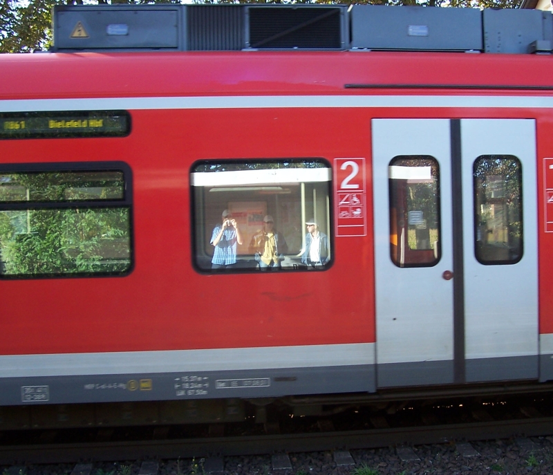 Außerdem sorgte ein knallroter, portabler CD Player für stimmungsvolle Musik. Doch trotz bezahlter Gema-Gebühren streikte dieser. Ein Umschalten auf Radio wollte einfach nicht die gleiche Stimmung verbreiten. Auch unsere hochqualifizierten Blicke wollten einfach nicht das Übel in dem Gerät erkennen. Das Gerät wurde zwar zu Schrott deklariert, jedoch machten die mit vielen Erinnerungen behaftete Aufkleber auf dem Gerät eine Entsorgen unmöglich. Plan B musste her: bekannte Volksweisen lustig und adrett vorgetragen, einstimmig beginnend, zweistimmig endend und mit eigenen, wenn auch nicht ganz jugendfreien Textergänzungen bereichert. Durch das dann aufkommenden Schunkelverhalten wurde der Zug so stark in Schwingungen versetzt, dass er mit einer gehörigen Verspätung Dortmund erreichte (oder war es doch ein DB Problem?). Jedenfalls waren wir exakt 2 Minuten zu spät an dem Gleis unseres Folgezuges und konnten diesem nur freudig hinterherwinken. Auch andere Gruppen war das Entsetzen anzusehen. Nur eine krächzende Bahnhofsstimme konnte all den Zurückgebliebenden einen Funken Hoffnung geben. Der nächste Zug zum Ziel stand so gut wie bereit und würde uns schon in einer halben Stunde weiterbringen. Und kurz vor unserem Ziel passierte es: eine mutige Reisegruppe verließ in einem Vorort trotz eindringlicher Warnung den Zug. Nur weiße, saubere Taschentücher vermochten den ernst der Lage zu überspielen.